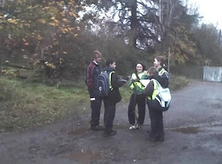 The next part of our journey was done, not by map (ours was sealed in an envelope), but firstly by tracking signs which changed halfway to hobo signs. Several times there were false trails and some of the signs had been dislodged, damaged or destroyed by walkers, ramblers and horse riders. We arrived at the second base (a bus shelter) with roughly fifteen minutes to spare and won some chocolate hob nobs (we haven’t finished those yet either!!)