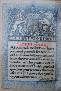 Robert Jack, also known as “Robin” or “Bob.” was brought up in Prestonpans, East Lothian. He initially joined scouting as a Wolf Cub and in his early years progressed through Scouts, Rover Scouts and served as a Wolf Cub leader.